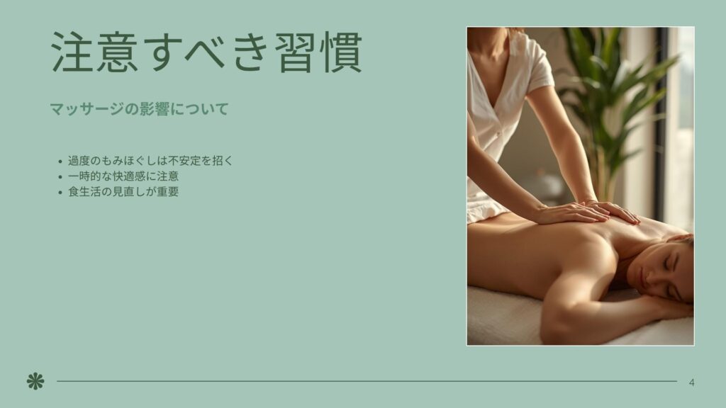 その習慣、要注意!もみほぐしと食生活の影響