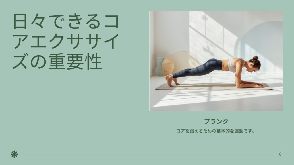 整体での適切な調整と日々のコアエクササイズ